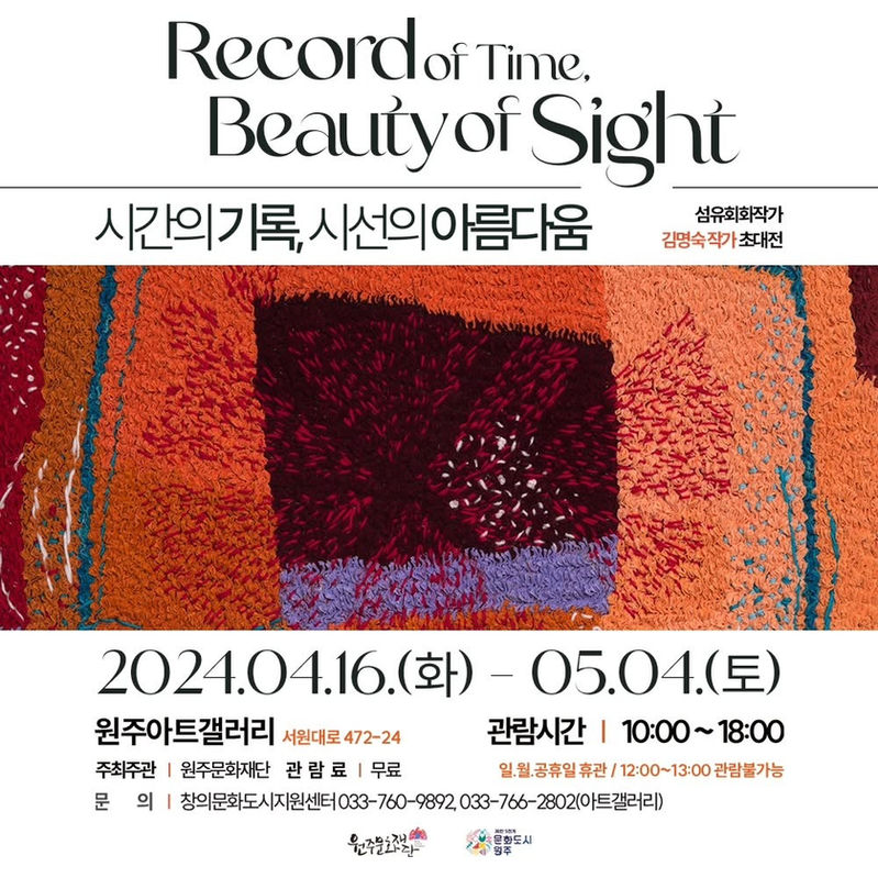 24년4월16일~5.4일까지 원주 아트갤러리에서 진행된 [시간의기록, 시선의 아름다움] - 김명숙작가 초대전을 열었습니다.